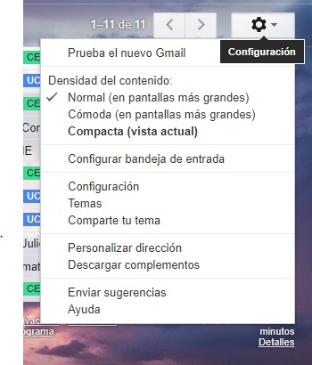 Para empezar, iniciamos sesión en nuestra cuenta de Gmail, y accedemos a la configuración: